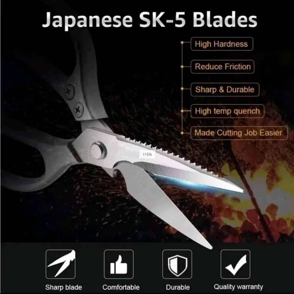 Bilah keluli Jepun premium memastikan setiap potongan ayam, ikan & daging lebih cepat dan kemas β tak perlu tekan kuat.